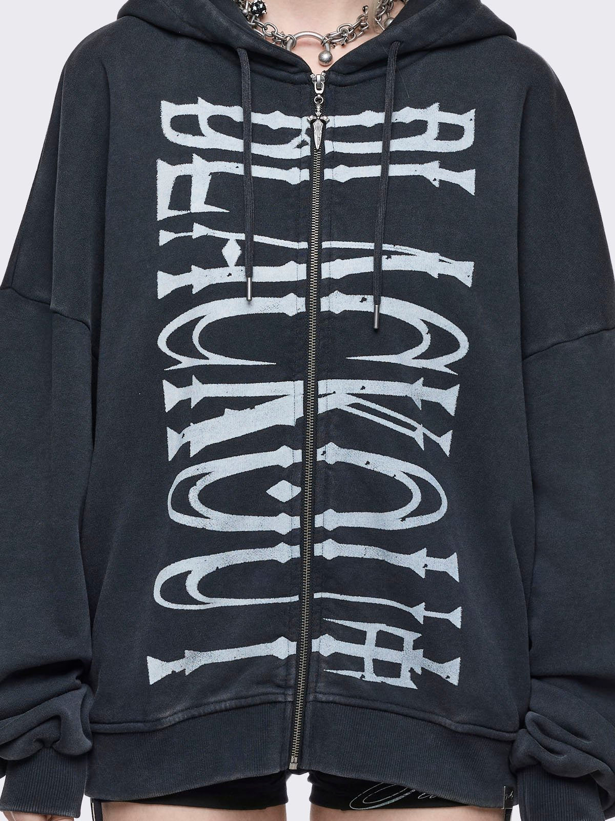 - Grey washed zip up hoodie