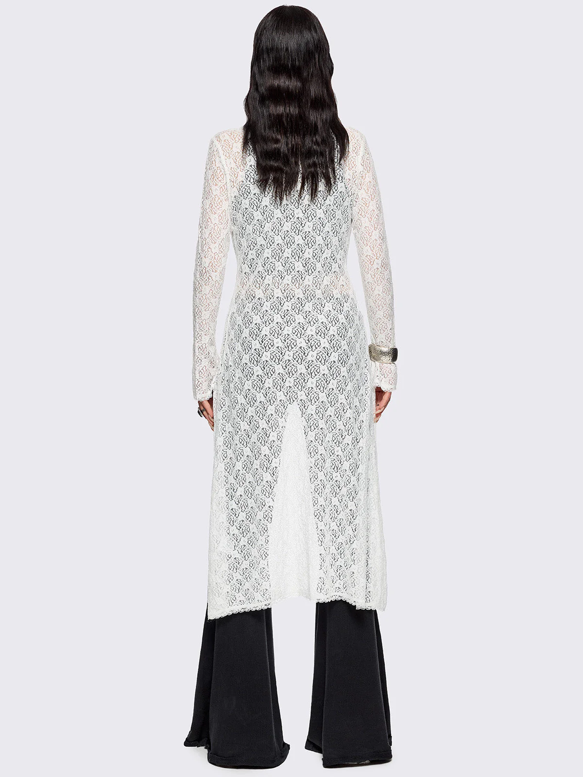 - Flared long sleeves