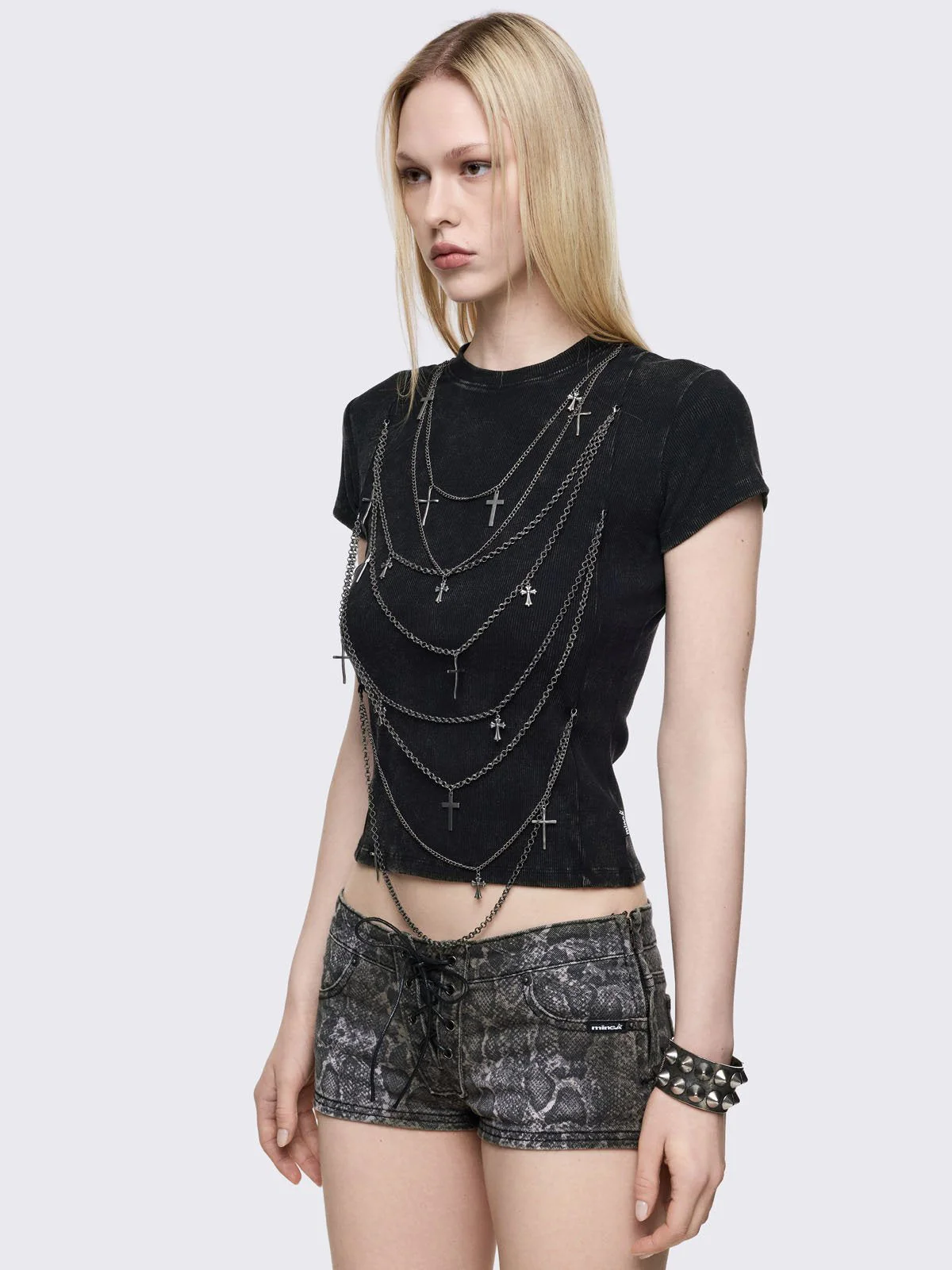 - Multi-layered chain with cross pendants